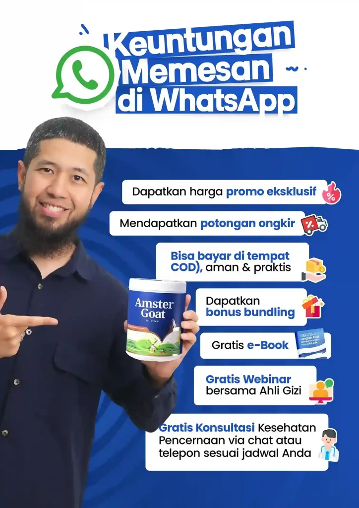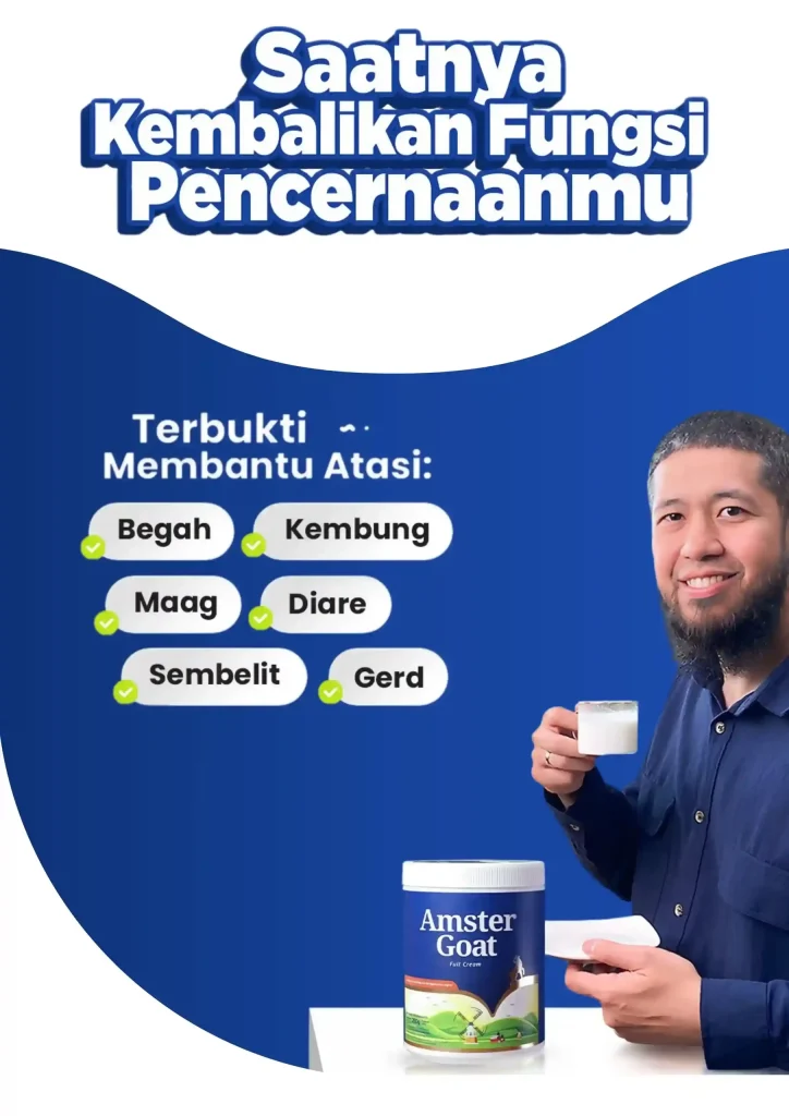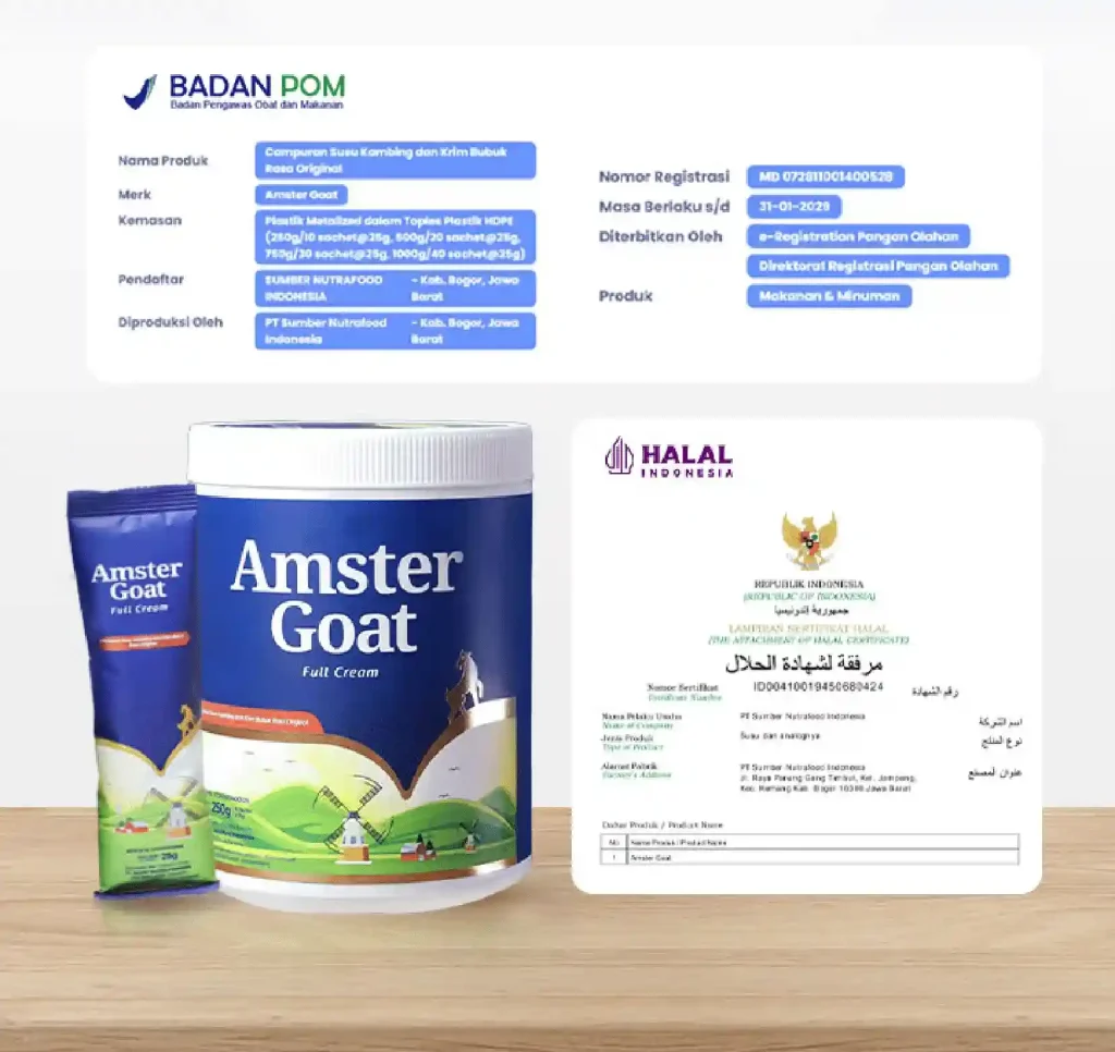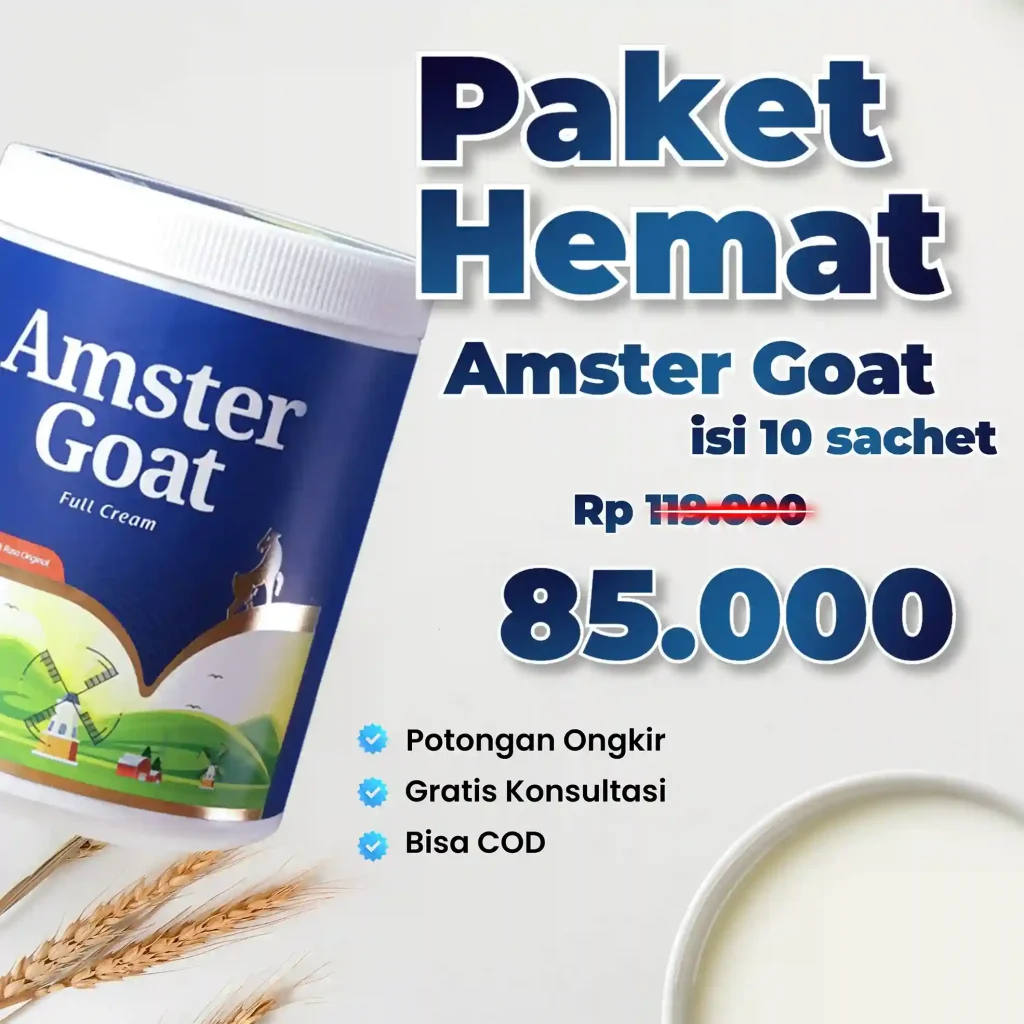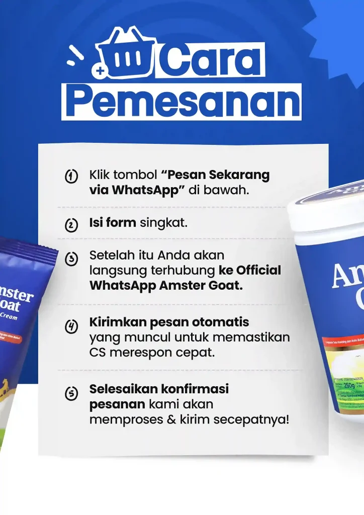 Amster Goat berbentuk bubuk agar lebih tahan lama, praktis disimpan, dan mudah dikonsumsi. Proses pengeringannya menjaga nutrisi tanpa perlu bahan pengawet, serta membuatnya lebih ekonomis dan efisien dalam distribusi.
